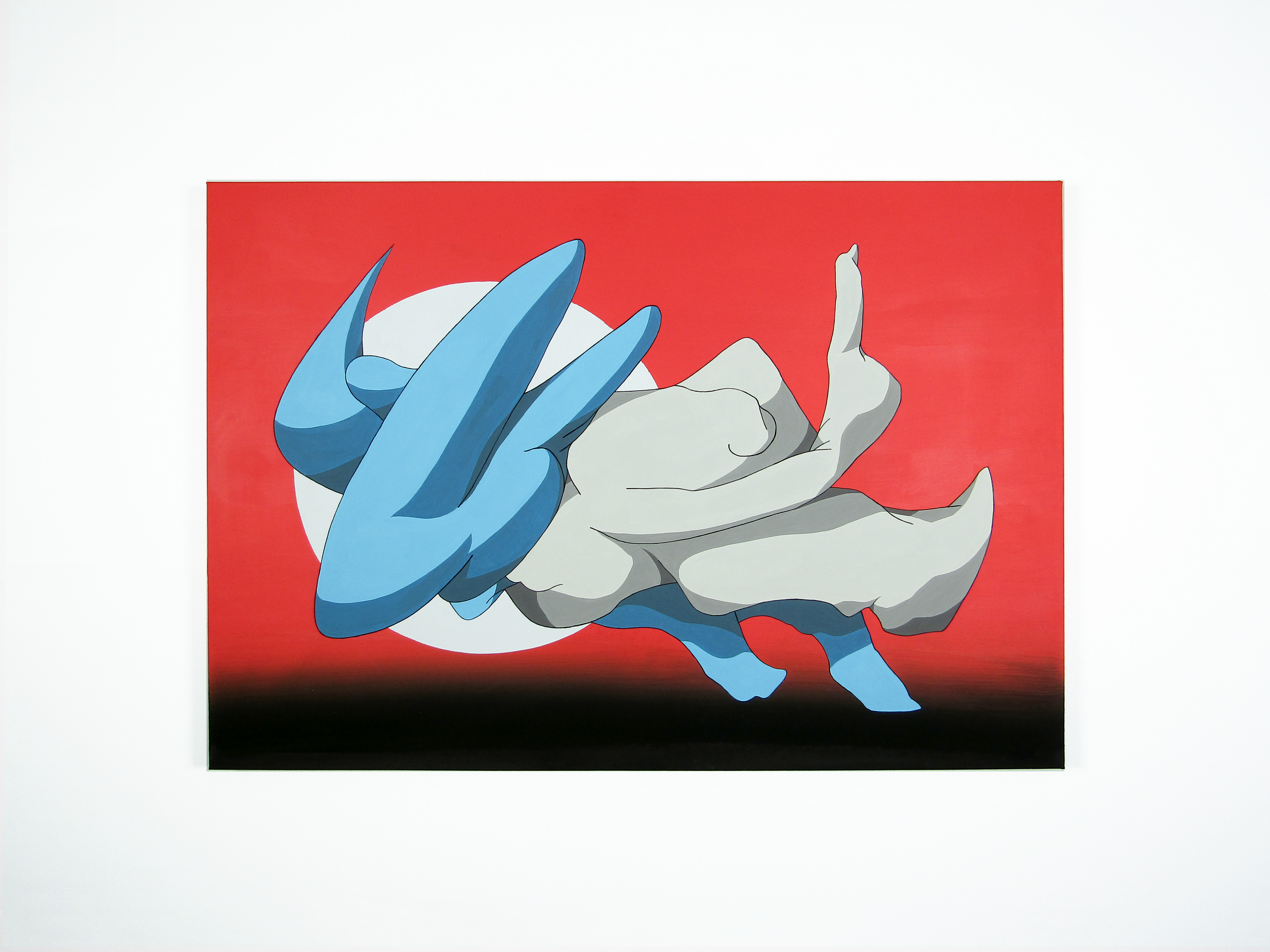 時世が変わり屋外に出る機会が増えてきた時、人前に出る事が後ろめたい、リスクのある行為だと無意識に思っていた事をきっかけに制作したグラフィティ。青白い生き物が漂っている様を不穏でも、皮肉じみた平穏でもない雑然とした雰囲気を意識して描いた作品。